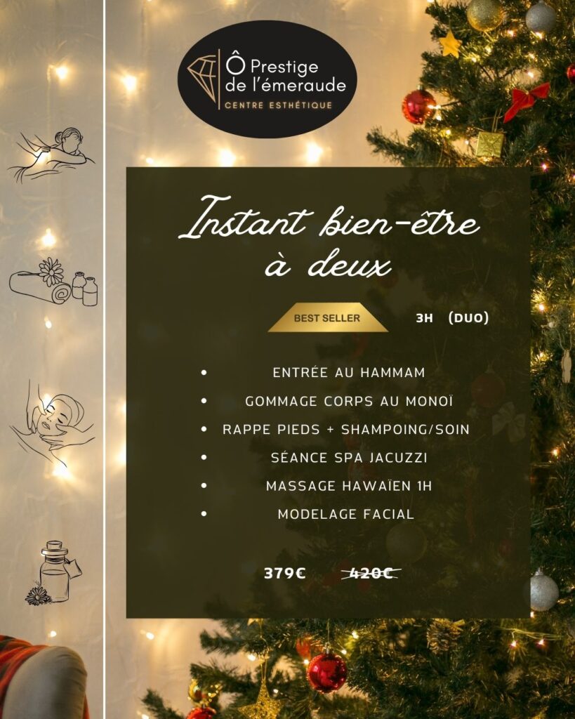Cette année, faites plaisir à vos proches avec une parenthèse de détente et de sérénité. Laissez-les découvrir nos soins relaxants, massages apaisants et rituels exclusifs, spécialement conçus pour les fêtes.